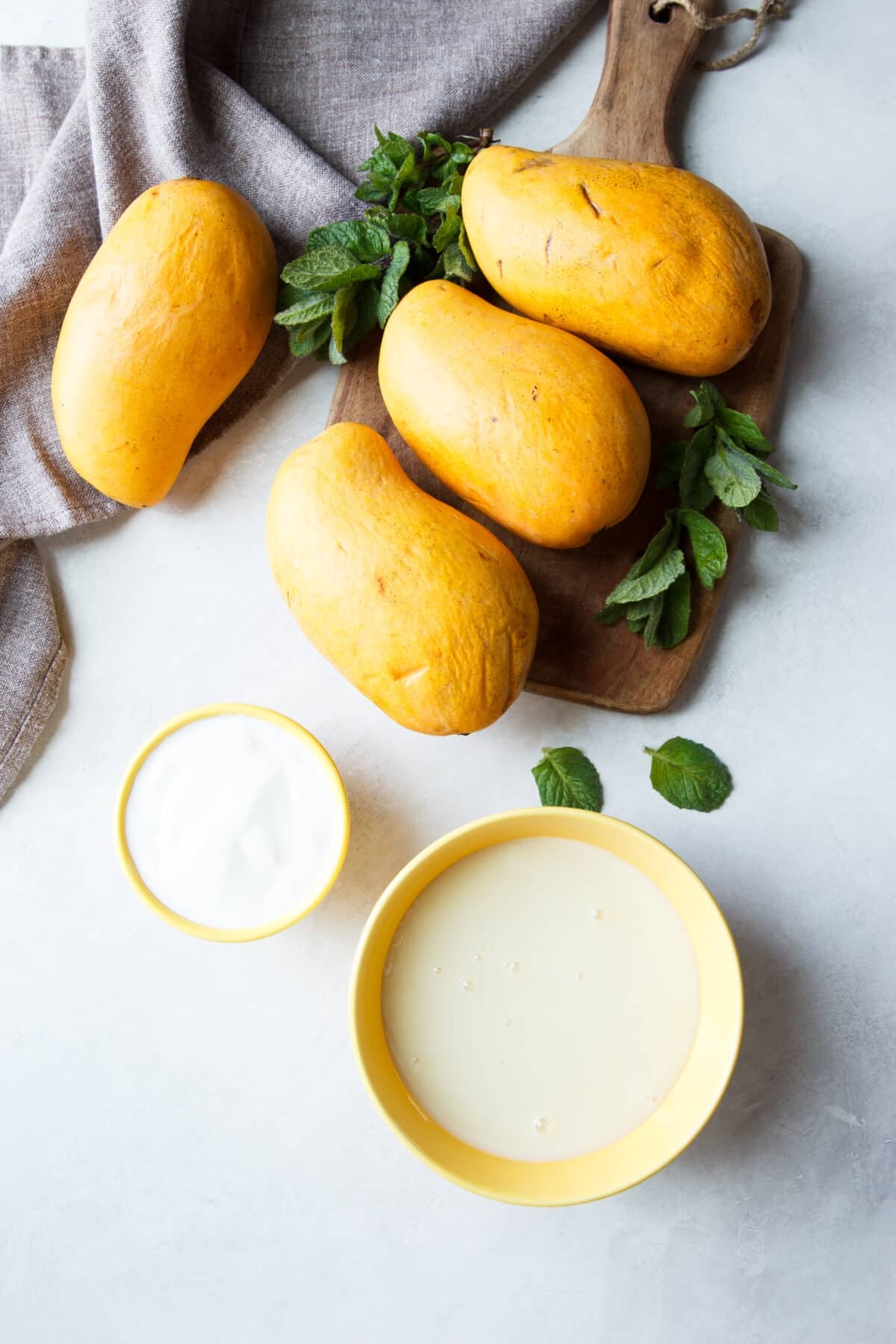 - Mango (fresh or frozen) – this is the star of the recipe, so use the best you can find. Ripe mangoes will give you the sweetest, most flavorful result. Frozen mango works just as well, just thaw completely before blending.