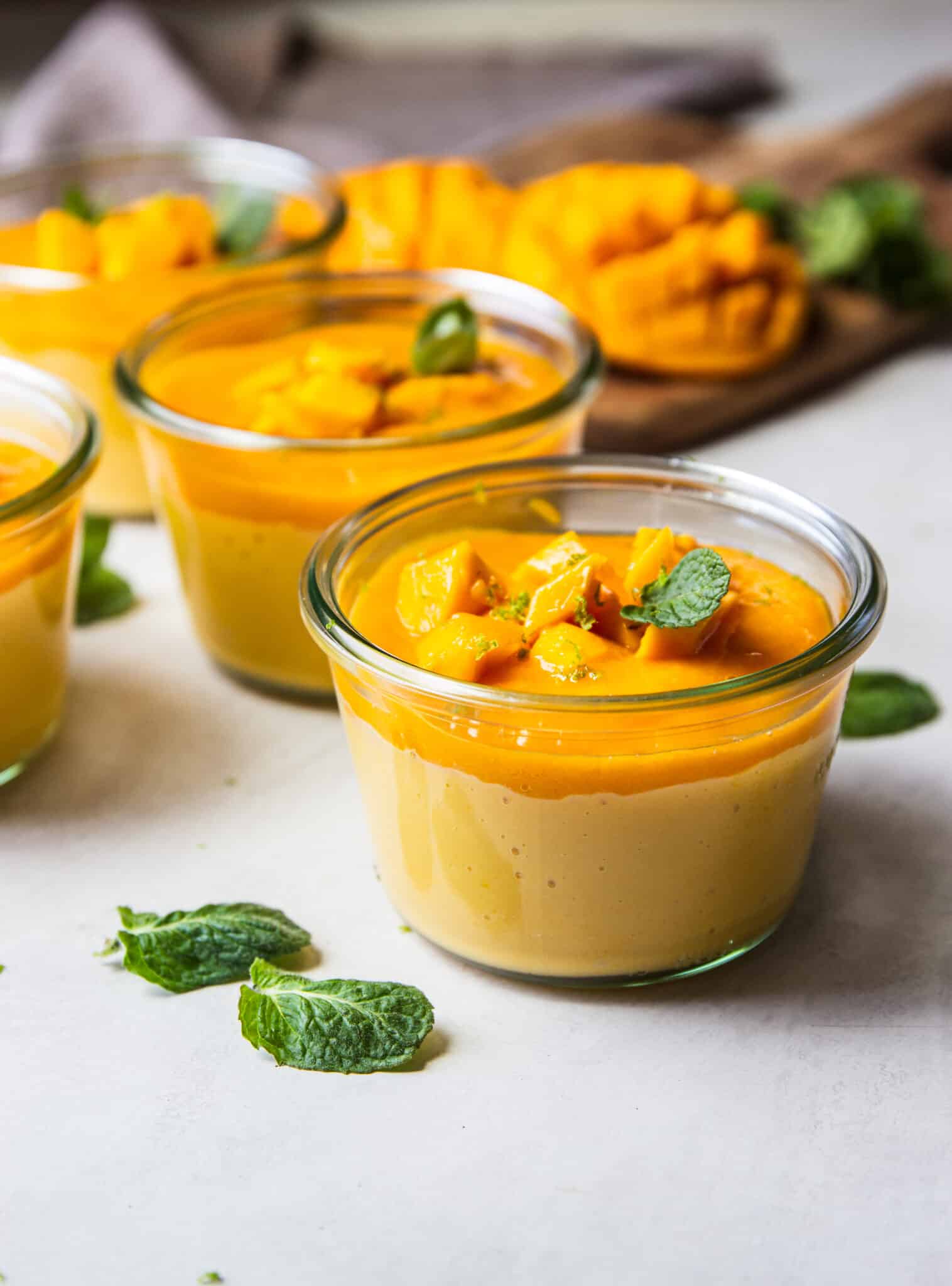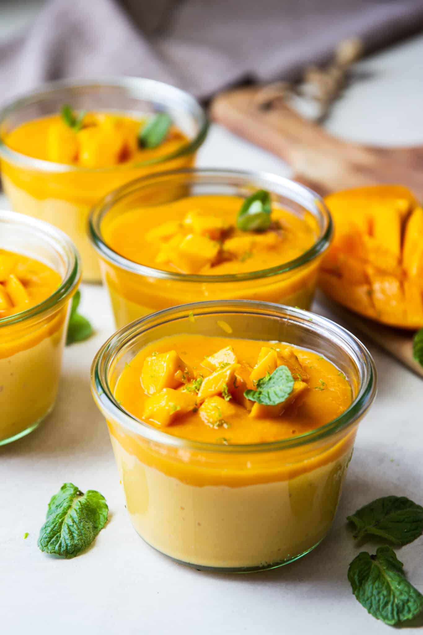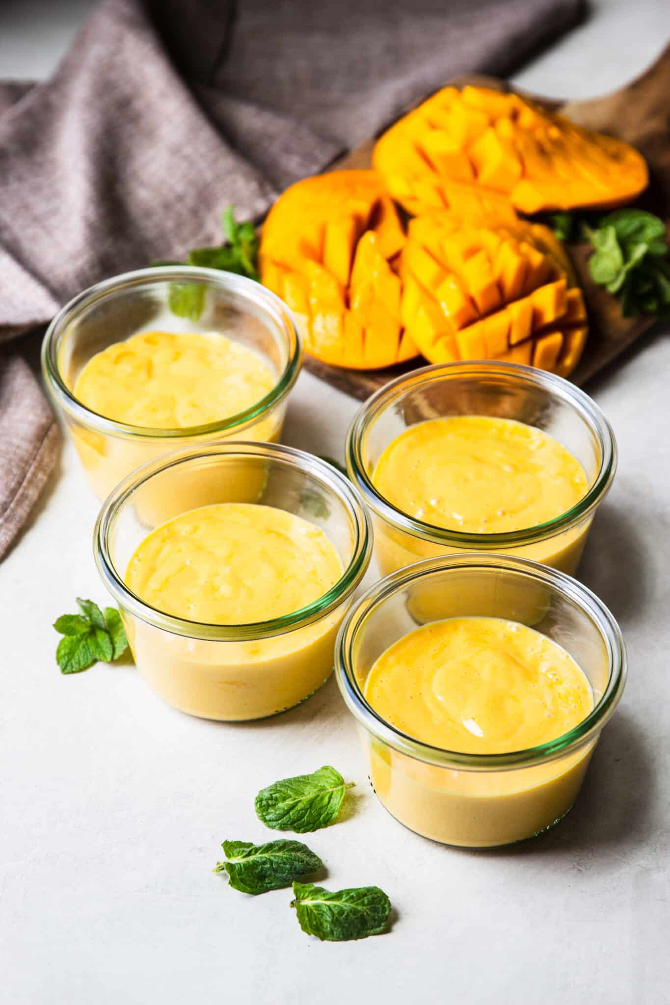 For a frozen treat, place the filled jars in the freezer for 1–2 hours until firm enough to enjoy like a soft mango ice cream.Storage