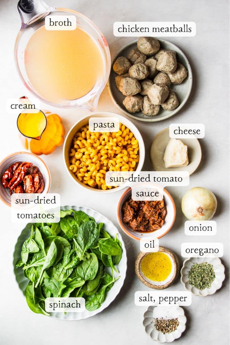 - Pre-cooked chicken meatballs – A huge time-saver and perfect for weeknights. You can slice them in half or leave them whole. Substitute for shredded chicken or cubed chicken.