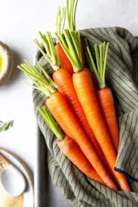 Prepare the carrots by washing and peeling the carrots if you like, I generally prefer to scrub them with a vegetable brush and keeping the peels, especially if my carrots are organic. Keep them whole. Pat them dry to remove excess moisture.