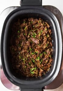 Shred the beef directly in the slow cooker or on a cutting board, then return it to the juices and toss to coat.Finish with freshly chopped cilantro and an extra squeeze of lime before serving.